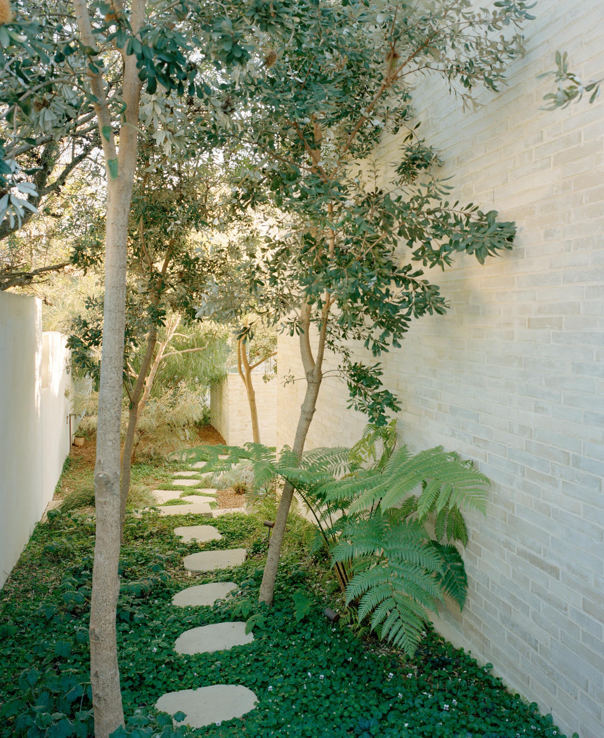 Our design approach was inspired by time spent in Mexico City, where we were drawn to the urban condition we found there. In this densely populated metropolis, houses were often hidden behind walls, creating garden oases within. Walking the city’s streets, we saw defensive perimeter walls that were softened by rambling plants and trees poking their boughs beyond their boundaries. The result is a city where homes feel secluded, yet still offer intrigue to passers-by.