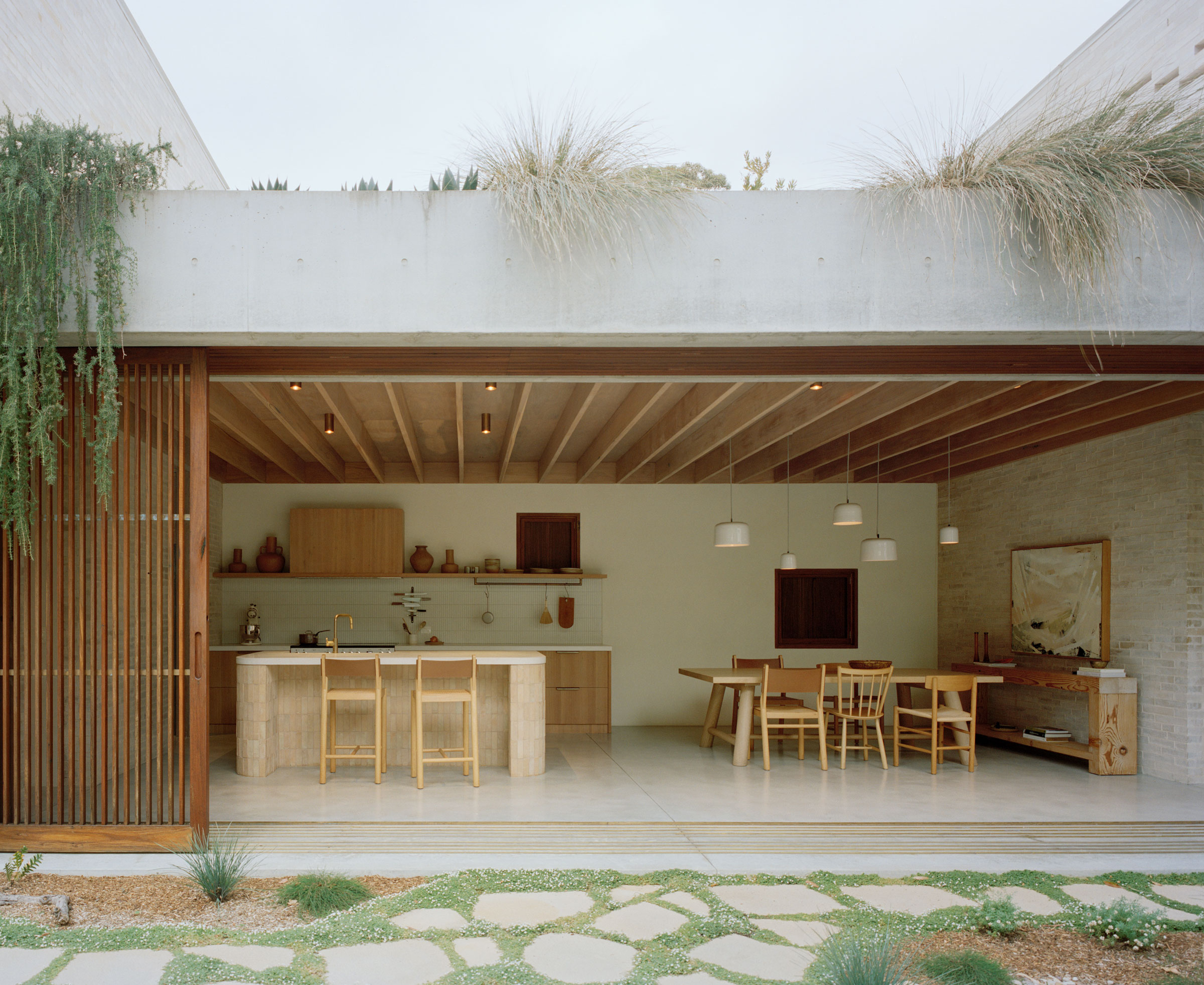 - 1. Handmade brick, terracotta, concrete and timber meet in the home's kitchen.