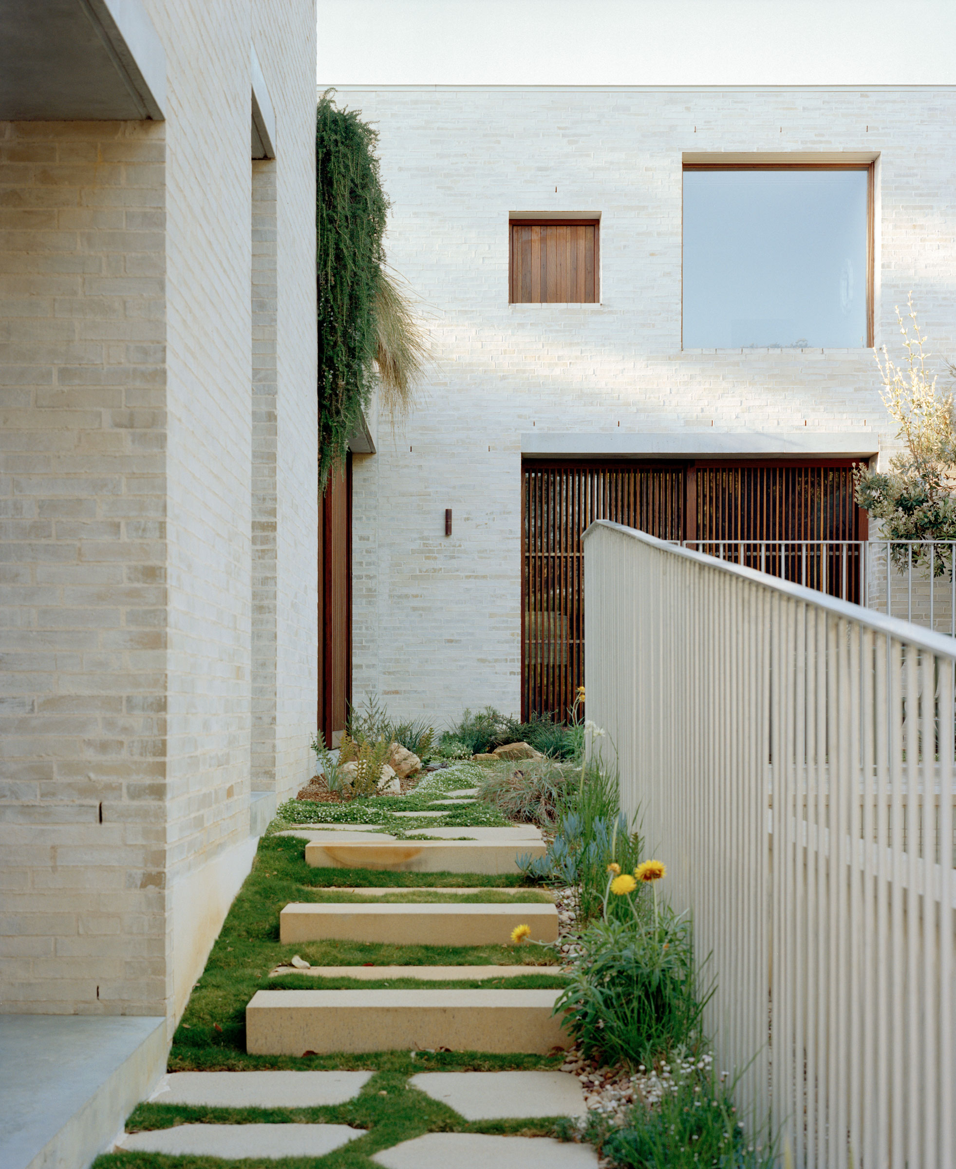 The house is composed of two brick towers, linked by a low-slung pavilion. The overall building footprint shifts towards the neighbours, creating a long, sun-drenched garden with a street-facing backyard and pool. For a family home, the footprint is modest, resulting in less home and more garden, and minimising site disturbance.