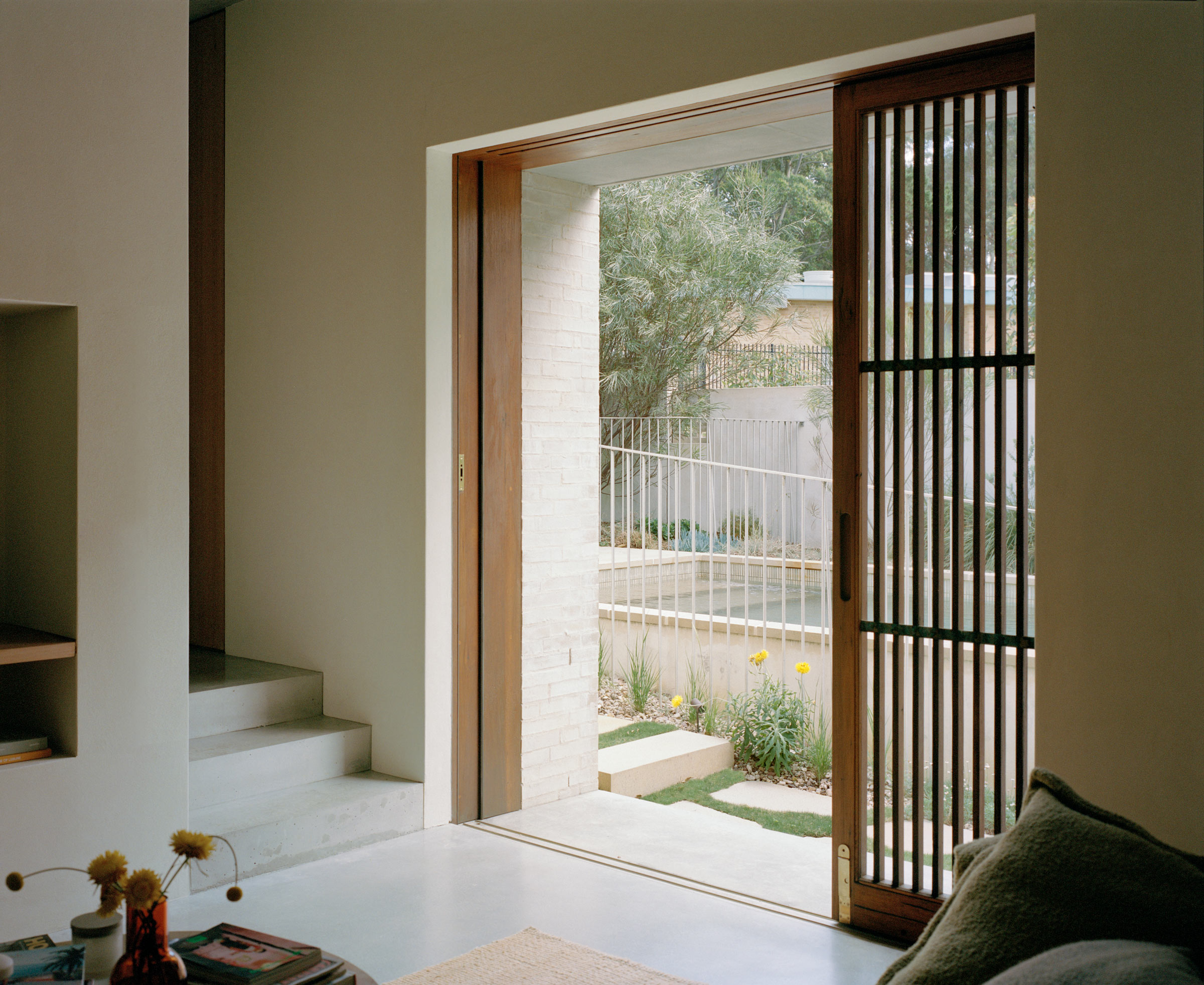 - 2. A sliding timber screen opens the living room onto the garden.